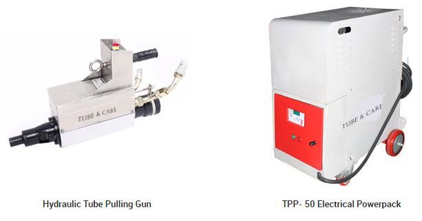 Microprocessor controls on powerpack and hydraulic tube pulling gun ensure trouble free life.